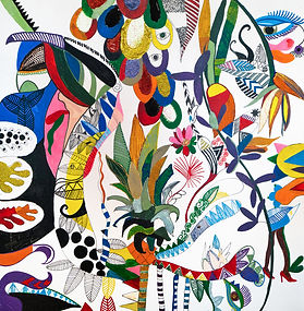 Une mémoire rhizomique : mettre « au dessin » ce que Moey ressent sur l’instant. D’où l’intérêt de composer avec la couleur, les formes, les textures de façon spontanée. Des créations qui prennent forme en fonction d’un état de l’être, de l’esprit, d’un état